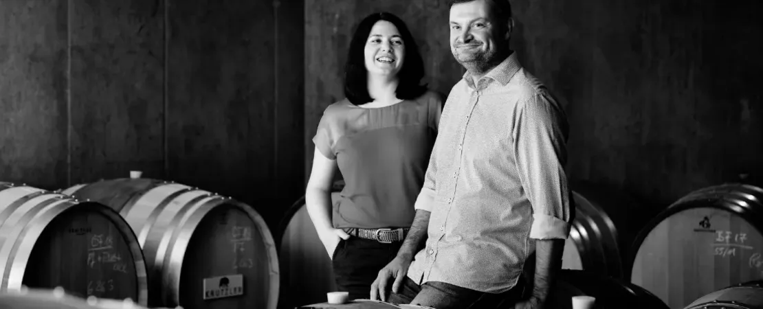 Bis zu 3 Wochen Maischegärung und Standzeit im grossen Bottich, Ausbau im Eichenbarrique.
